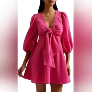 Features a stylish bow detail and puff sleeves. Ideal for a standout look.