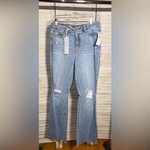 Stylish high rise jeans by Seven7. Slim flare design in a light blue shade. Perfect for casual wear.