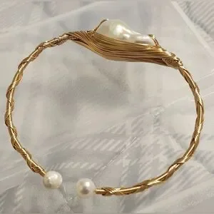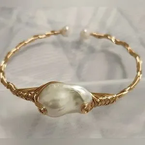 Open cuff design with baroque freshwater Pearl bracelet. Perfect for adding a touch of sophistication.