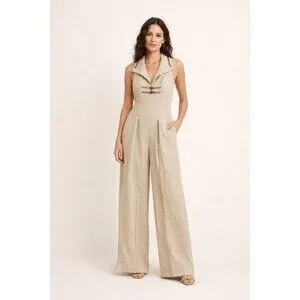 Barbara Barbara Women’s Halter Beige Jumpsuit Wideleg Size 4