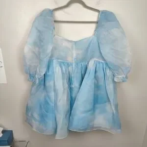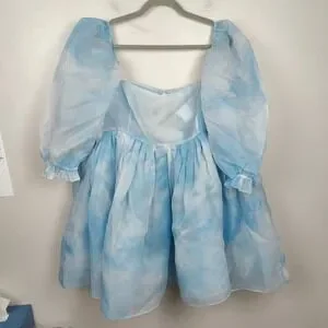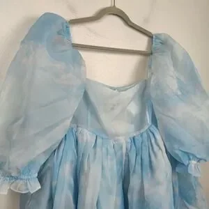 Selkie The Puff Dress Womens Plus Size 2X Clouds Blue White Organza Mini Girly