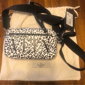 NEW $1050 VALENTINO VLTN Logo Animalier Print Leather Camera Bag!