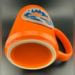 MLB NY Mets 12oz ceramic mug. Orange and Blue w/ a metal etched logo.