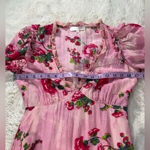 LoveShackFancy Salima Pink Floral Short Sleeve Tiered