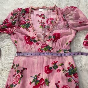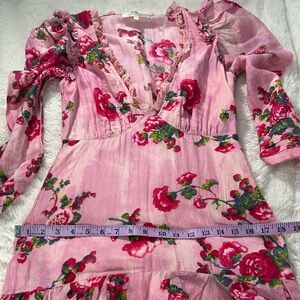 LoveShackFancy Salima Midi Dress Pink Tiered Asymmetrical Size 4 Ruffle Flowers