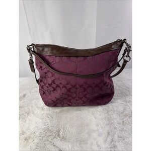 Vintage Coach Hobo Bag Pink/magenta Canvas W/ Leather Trim