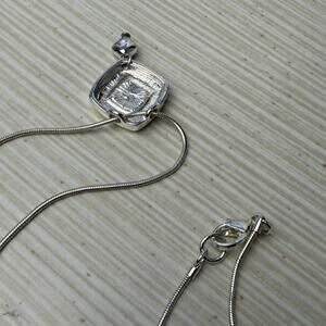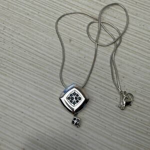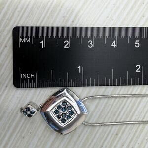 White Gold Pendant Necklace with Blue Gemstones Dangling Charm 16 in Chain
