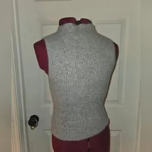 House Of Harlow Cashmere Ribbed Mock Neck Gray Sleeveless Top