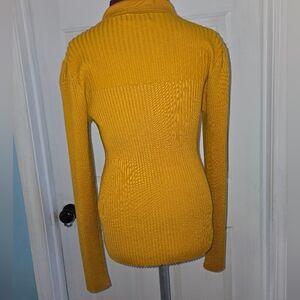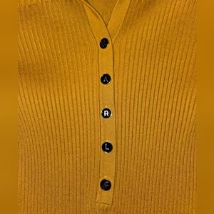 Karl Lagerfeld Yellow Button-Up Ribbed Collar Women's Sweater
