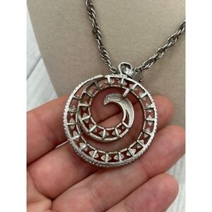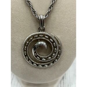 Trifari Spiral Swirl Wave Rope Design Statement Pendant Silver Tone Necklace 20"