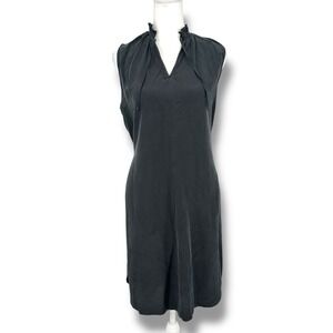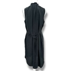 Amour Vert Black 100% Silk Tie Neck Midi Dress L Minimal Chic Quiet Luxury USA