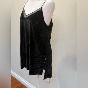 Free People Black Velvet Cami Mesh Trim Spaghetti Strap Tank Top S