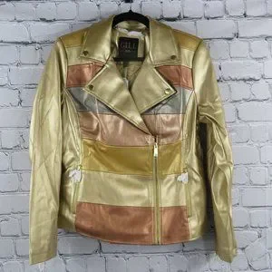 Hardware: Zip front, decorative buttons on collar and lapels, two functional front zip pockets, zippers at tend of sleeves
