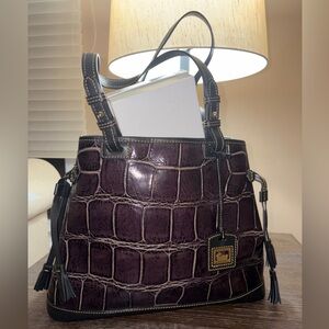 Dooney & Bourke Maurizia Croc-Embossed aubergine Leather Tote EUC & NWT WALLET