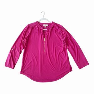 Michael Kors Women’s XL Magenta Pink Zip Front Blouse Roll Tab Sleeves