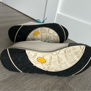 Step into casual comfort with these Scarpa Margarita Canvas sneakers. Designed with a sturdy gray canvas upper and striking teal laces, they’re perfect for everyday wear, light outdoor activities, or travel. The Vibram sole ensures reliable traction, while the breathable lining keeps your feet comfortable. Marked as EU 41 (approximately US Women’s 10.5) with a measured insole length of about 26 cm.
