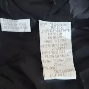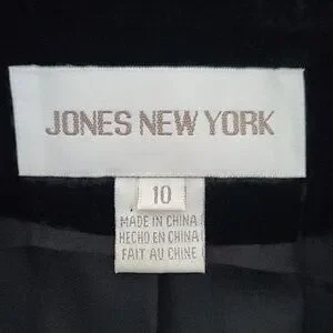 Luxurious and timeless, this Jones New York jacket features rich black crushed velvet with a soft, elegant sheen. Made from a rayon and silk blend (75% rayon / 25% silk), it drapes beautifully and adds instant sophistication to any outfit. The longline silhouette, hidden button front closure, and matching self-tie belt create a flattering, polished look.