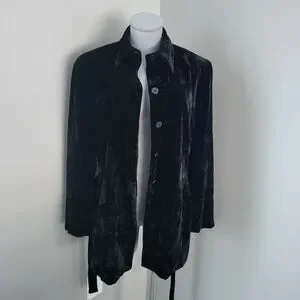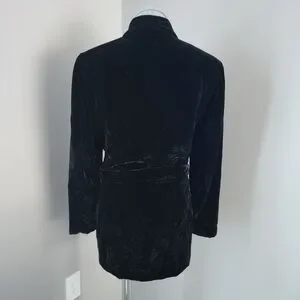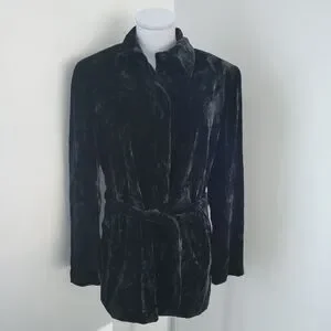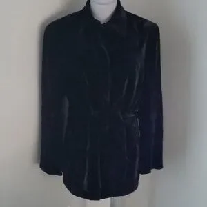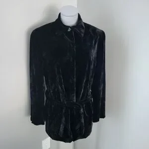 Vintage Y2K Jones New York Black Crushed Velvet Belted Jacket Sz 10