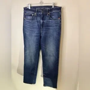 Discover comfort and style with American Eagle Outfitters men's blue jeans. Perfect for any casual occasion. Athletic straight style. More measurements in photos.