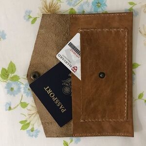 Stylish and durable brown leather wallet for travel. Perfect for carrying essentials with ease.