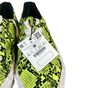 Bershka Women’s Yellow & Black Street Style Lace-Up Sneakers Size 38