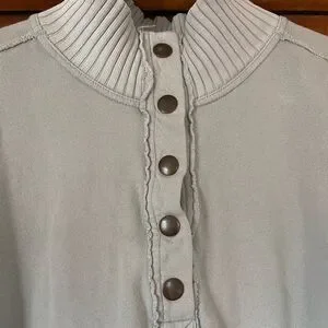 Aerie pullover sweatshirt 3/4 metal snaps, front pocket Cute oversized look Size large Small hole on the arm as shown