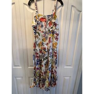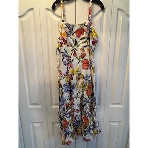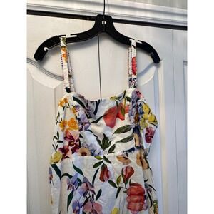 Farm Rio Greek Garden Off White Sleeveless Maxi Dress Floral Beaded Straps Sz L