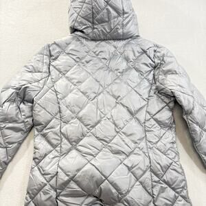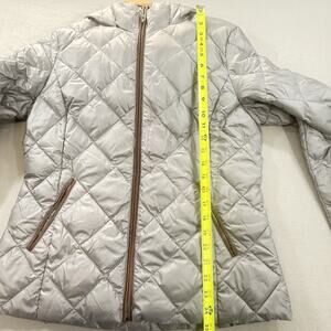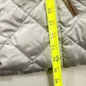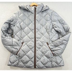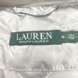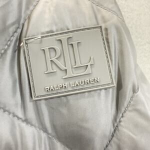 Lauren Ralph Lauren Womens Medium Quilted Puffer Jacket Gray Faux Leather Trim
