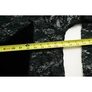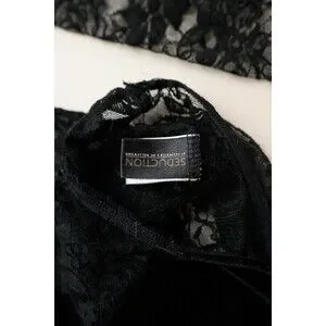 This product is an XL black sheer lace bodysuit from Frederick's of Hollywood. It is designed specifically for women and features a one-piece style with a band size matching the XL size. Made from lace fabric, this bodysuit offers a sexy and alluring look, perfect for intimate wear or special occasions. Its seductive design and attention to detail make it a stylish and exciting choice for those seeking a comfortable and attractive bodysuit.