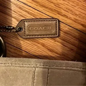 This stylish tote bag features a sophisticated tan color, perfect for any occasion. Crafted with high-quality leather, it offers both durability and elegance. Ideal for daily use, this bag combines functionality with a chic design. Tags say Coach but they’ve not been authenticated.