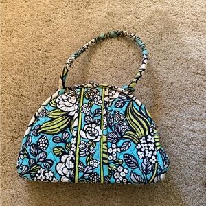 Vera Bradley shoulder bag with vibrant blue and green floral design. Features a comfortable handle and spacious interior.