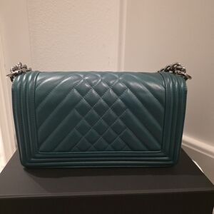 Chanel Boy bag in chevron quilted leather with silver