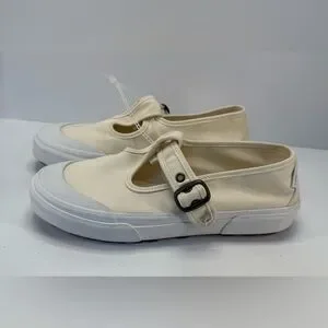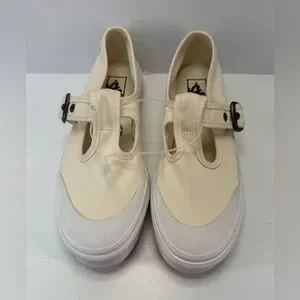 NWOB Vans Cream canvas Mary Jane Buckle Slip-Ons W9, M7.5