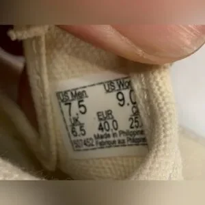 Vans slip-ons in cream canvas with buckle accent. White sole for a classic look. NWOB cream canvas Mary Jane buckle Vans, women’s size 9, men’s size 7.5. Slightly dusty from the store. No box