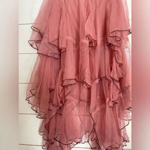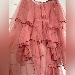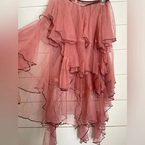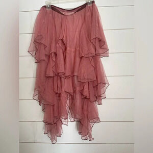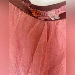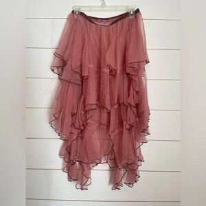 Y2K FP ONE Free People Net Godet Half Slip Midi SKIRTM/LPink Sheer Tulle Ruffled