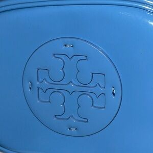 Tory Burch Blue Patent Leather Logo Cosmetic Bag