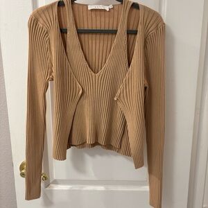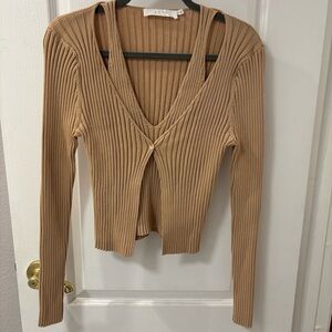 ASTR The Label Tan Ribbed Top Bodycon Faux Twinset Neutral size M