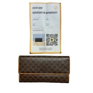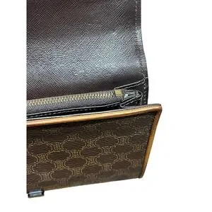Celine Macadam Monogram Long Wallet Brown Coated Canvas Vintage COA