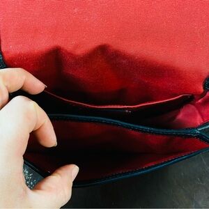 Strap: Comes with a detachable, bicolor shoulder strap (typically black and redwood/brown) with a 22-inch drop, allowing it to be worn as a shoulder bag or crossbody.