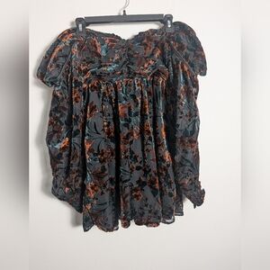 House Of Harlow Burna Mini Dress Velvet Burnout Dark Moody Floral Off Shoulder S