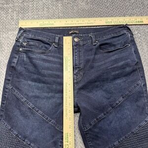 True Religion Rocco Men 38x33 Biker Moto Relaxed Skinny Denim Blue Jeans Stretch