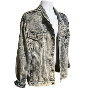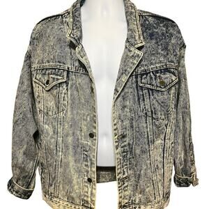 VTG URBAN EQUIPMENT Denim Bomber Jacket Size Lg Acid Wash 80s Blue Jean Retro