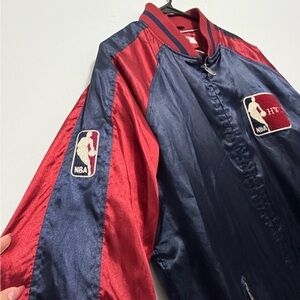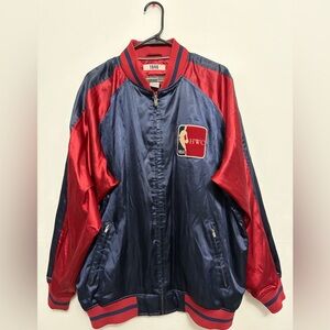 Classic satin-style finish with ribbed trim, zip front, and embroidered NBA details.