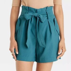 NWT! Target A New Day High Rise Utility Paperbag Teal Blue Shorts W/Belt