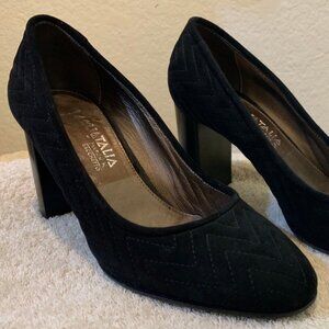 Aquatalia Marvin K Vero Cuoio Stitched Black Suede Round Toe 3" Pumps Size 6.5