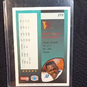 Collect the iconic Emmitt Smith trading card. Featuring vibrant blue and white colors, this card is a must-have for any fan.