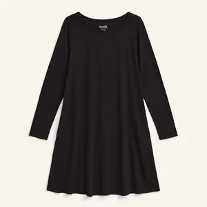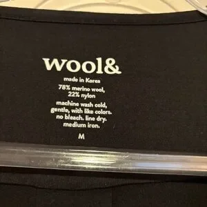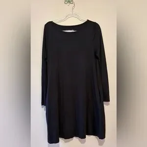 Wool& Rowena swing dress in black. Durable lightweight knit. 78% merino wool, 22% nylon. Long sleeve merino dress with side pockets in a flattering swing fit. In excellent condition. Size medium.