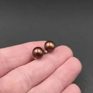 Sterling Silver Genuine Brown Pearl Stud Earrings A7019