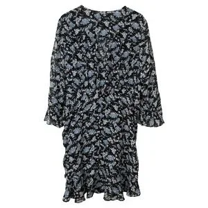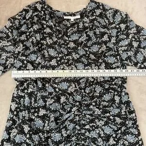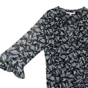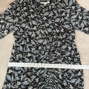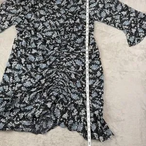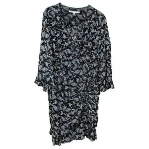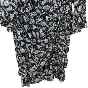 Veronica Beard Sean Wrap Dress Womens 20 Black Ditsy Floral Silk Ruched Ruffle