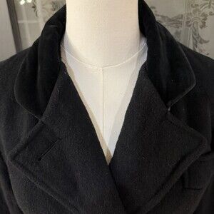 Vintage M.G. Kinsler “The Great American Coat” in a classic black wool blend. Made in the USA and professionally tailored with a timeless double-breasted design and structured silhouette.